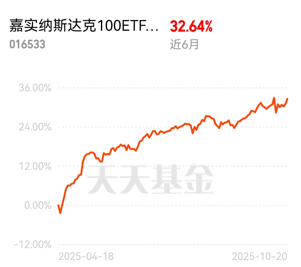 #宁德时代Q3净利润185.5亿元!如何解读?# 随着贸易形势缓和,叠加苹果股价大涨的助攻,市场风险偏好回升,对比了很多也就嘉实额度高一些,单日五千可以操作,昨晚$嘉实纳斯达克100ETF发起联接(QDII)C人民币$ 继续上涨,整体都是一个高开高走的趋势,真的太猛了,按照这个趋势,要不了两天又要新高了