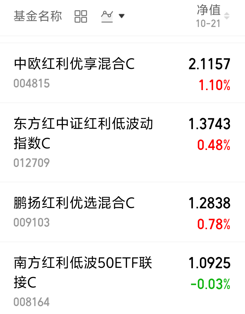 $中欧红利优享混合C(OTCFUND|004815)$今天涨了1.10%