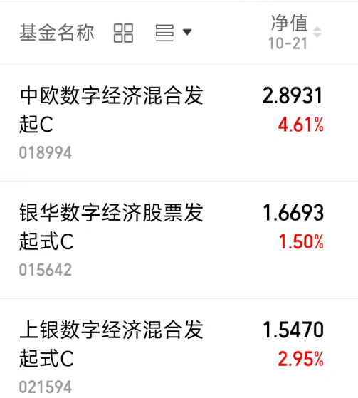 $中欧数字经济混合发起C(OTCFUND|018994)$+4.61%,涨幅居前