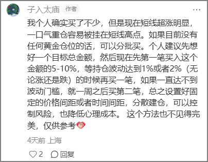 我们观点不变,短期波动放大属于预期之内,中期(3-6个月以上)维度下还是看好,如果没有仓位,仍然推荐适当配置一些,但是不宜重仓梭哈。不是跌了才这么说(估计大跌之后大家也不会急迫想要重仓了),上周还在涨的时候我们就是这么说的。具体操作上可以分批按照目标仓位5-10%的金额,每跌1-2%或者每周一次买入一笔。按照这个方法,最多回撤到20%的时候就会把目标仓位买够,这也是我们主观估计这一轮的最大回撤幅度。具体数值上有一定程度是根据历史情况(伦敦金现货近五年最大回撤是22%,放宽到十年也是这个数),也有一定拍脑袋的成分,大家兼听则明。