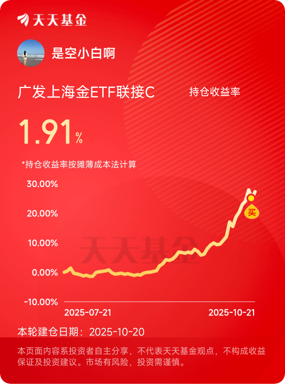 $广发上海金ETF联接C$ 收益不错,避险工具,乱世黄金,长期向上,回调继续发车,稳住我们能赢!