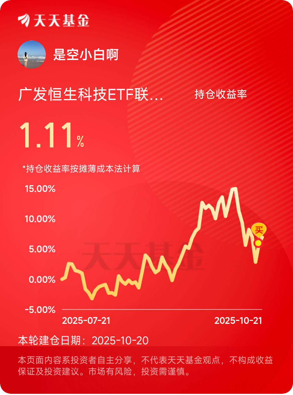 $广发恒生科技ETF联接(QDII)C$ 反弹初期,无需多言,继续分批发车!