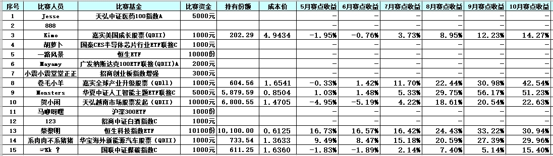 非常感谢15位参赛选手的支持和付出。欢迎大家继续关注2025第5届“传灯杯”养基比赛活动,11月份将揭晓比赛结果!