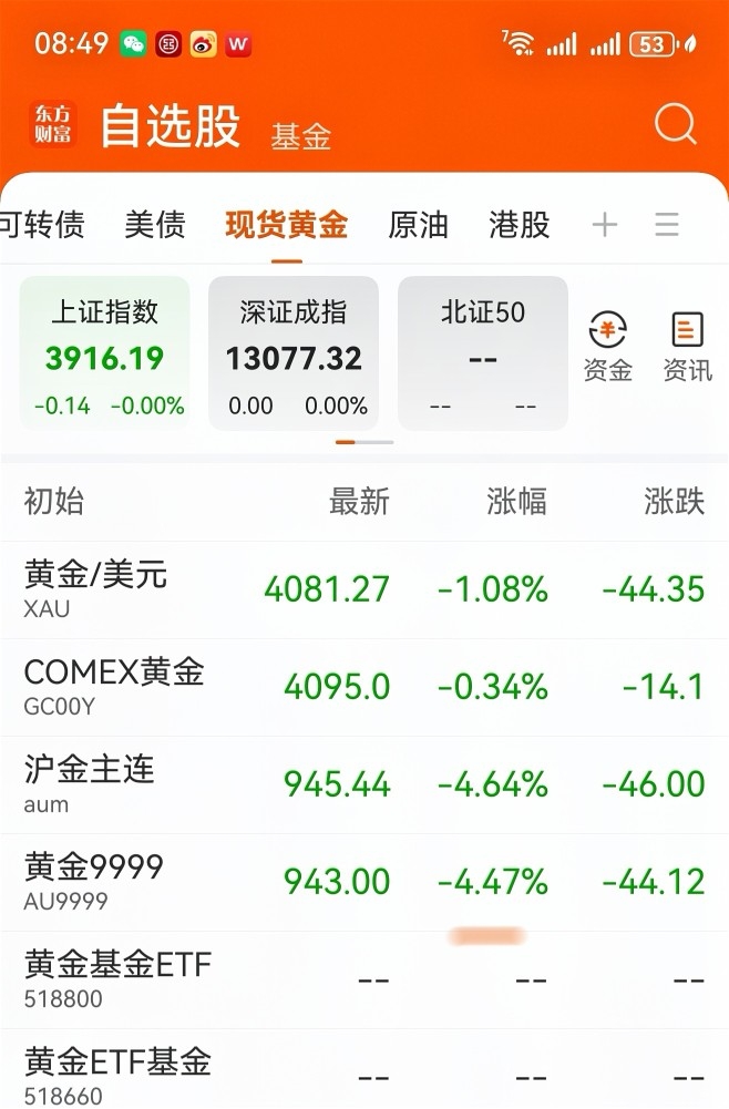 有可能国内黄金基金,在今天有可能要暴跌五点多。