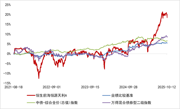 而作为一只“能攻善守”的二级债基,恒生前海恒源天利债券A(013204)通过股债混合,能够平衡收益与波动。在债券投资部分,产品聚焦流动性较好、信用等级较高的债券,追求稳健票息;在权益部分,产品坚持不赌不博,注重成长与价值风格均衡,分散配置。既能在股票牛市时把握机遇,追求提升收益水平,又能通过债券为主的持仓抵御股票市场震荡下行时的压力,攻守兼备的优势在震荡市中尤为突出。