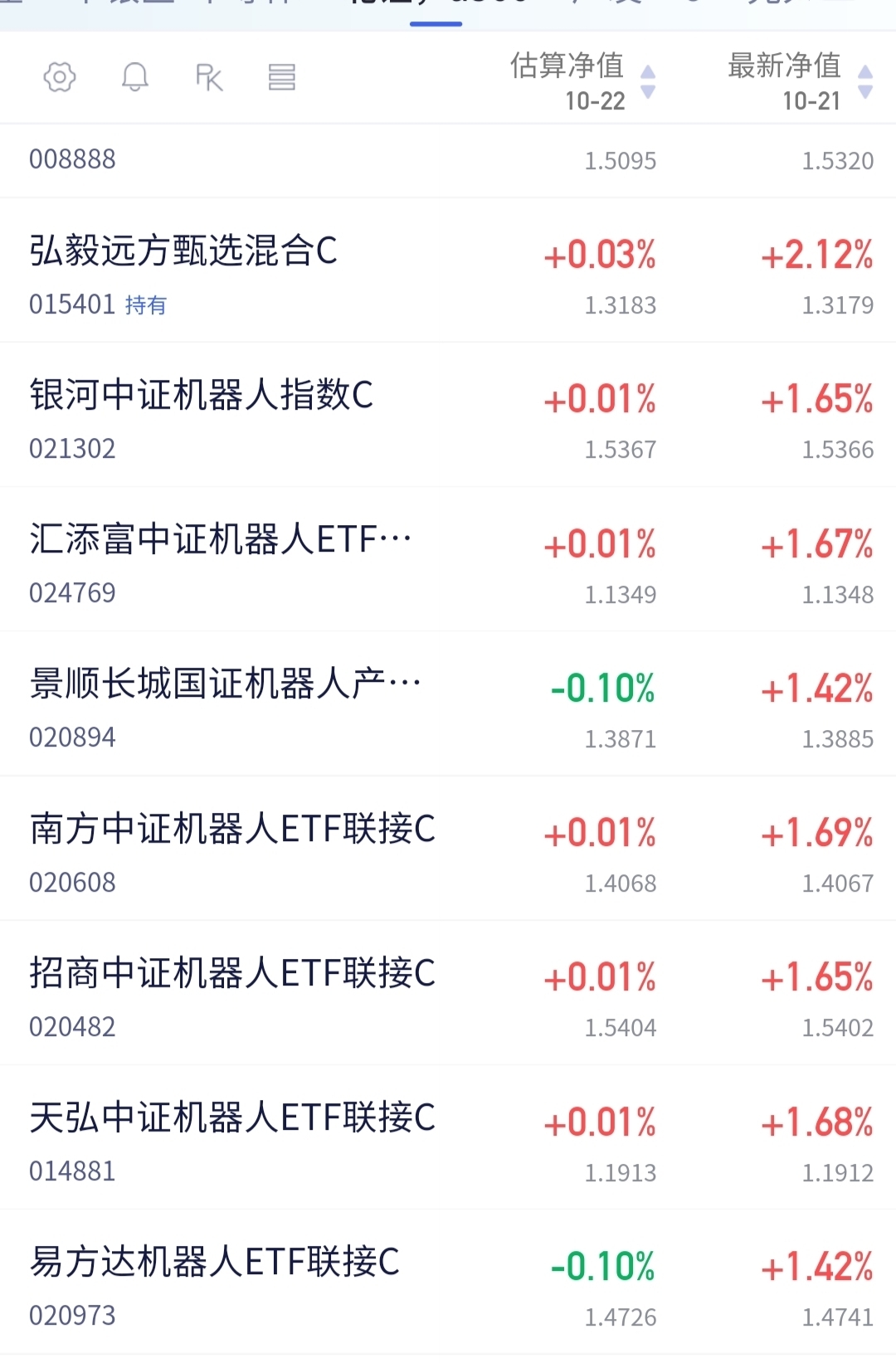 这只“黑马基”——$弘毅远方甄 选混合C$ 规模不大却灵活,近3月涨近30%,碾压鹏华永赢同类。如今机器人板块风险释放完毕,叠加“具身智能”入政策,软银、阿里纷纷入局,2025商业化元年已至,主线行情下它值得关注,而且今天也是预估涨了0.03%,涨得又比同类多,昨天更新涨幅也是领先同类一个点多,表现是非常突出的。