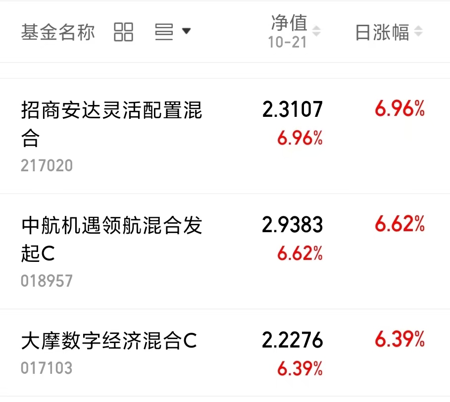 昨天行情CPO赛道回暖感觉开始逐渐好转了呀~咱就说10月后续行情是不是反弹行情呢?我看$招商安达灵活配置混合(OTCFUND|217020)$昨天收涨6.96%,在同类基中涨幅亮眼~爱了爱了~