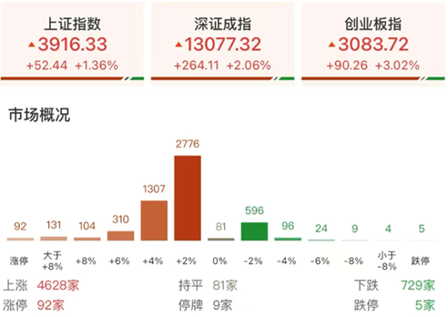 市场昨日震荡反弹,沪指重返3900点。沪深两市成交额1.87万亿,较上一个交易日放量1363亿。盘面上,市场热点轮番活跃,全市场超4600只个股上涨。从板块上看,AI算力硬件、消费电子领涨,高股息走弱。截至收盘,沪指涨1.36%,深成指涨2.06%,创业板指涨3.02%,中证A500指数涨1.65%。