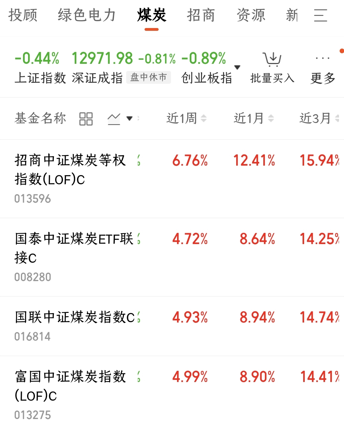 $国联中证煤炭指数C(OTCFUND|016814)$近一周上涨4.93%,近一月涨幅14.74%