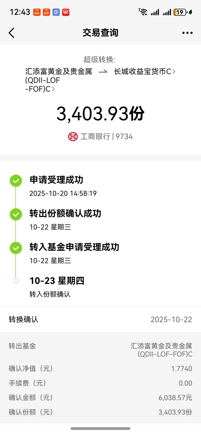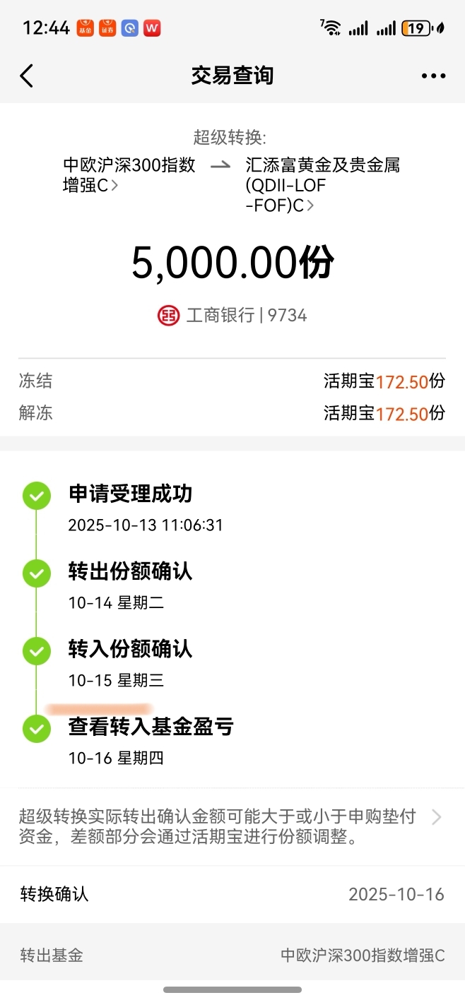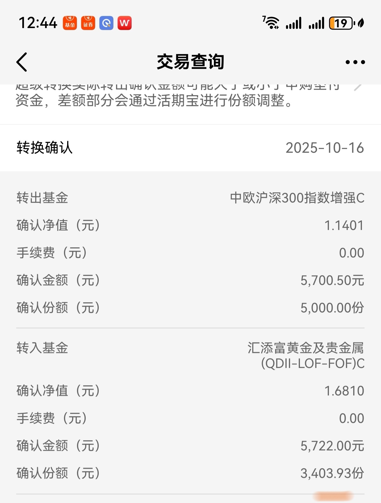 在前天周一10月20日那天尾盘的时候,又快速选择把在上周二那天确认买入部分持有份