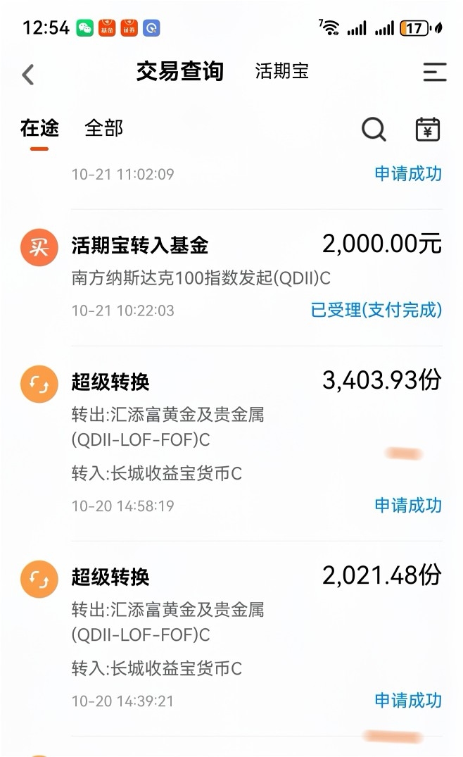 至于目前持有的某个黄金及贵金属qdll基金,还好在前天周一那天的时候,趁着大涨的时候,已经选择减仓卖出2笔持有份额资金止盈操作了。