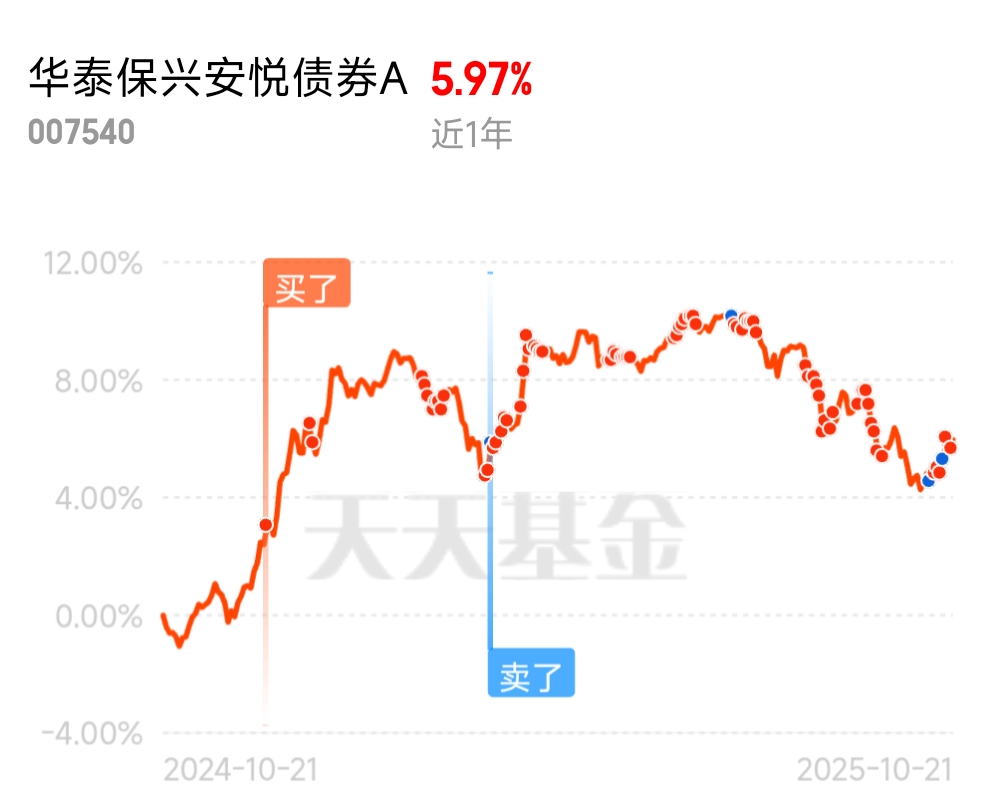 近期的安悦收益看着还好债基回暖了持续回升当中$华泰保兴安悦债券A$