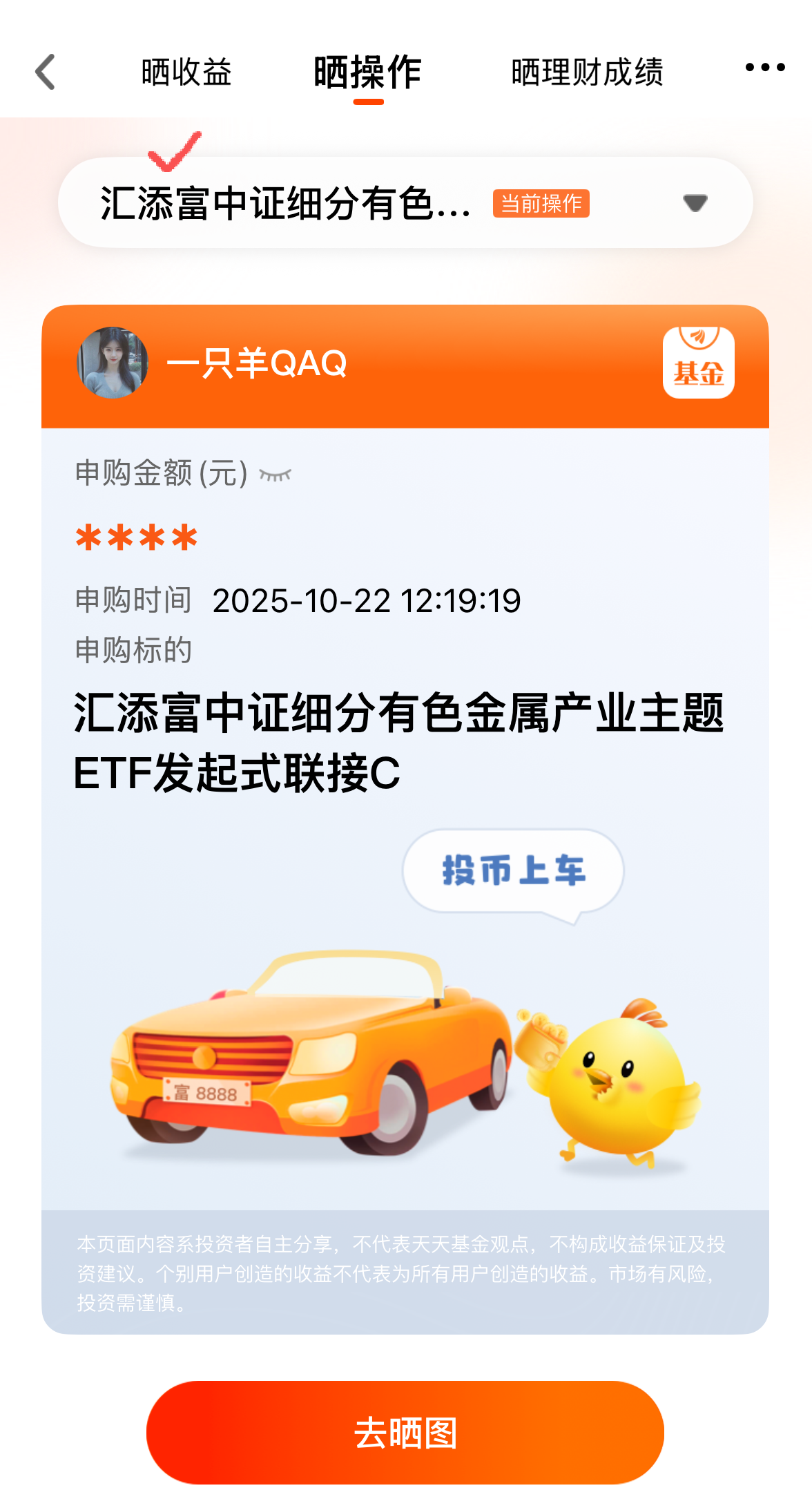 宝子们,昨天晚上现货黄金一度下跌6.3%,创12年最大跌幅,金友们跌麻了。相应的,今天有色也是调整,投资就是这样,没有只涨不跌的品种,也没有只跌不涨的品种,逢低才是安全操作。既然砸了个坑出来,我今天加仓$汇添富中证细分有色金属产业主题ETF发起式联接C(OTCFUND|019165)$,从上周四调整到现在,今天继续调整1.9%,前面近一月13%,近三月35.74%,短时间看我认为是个上车机会。