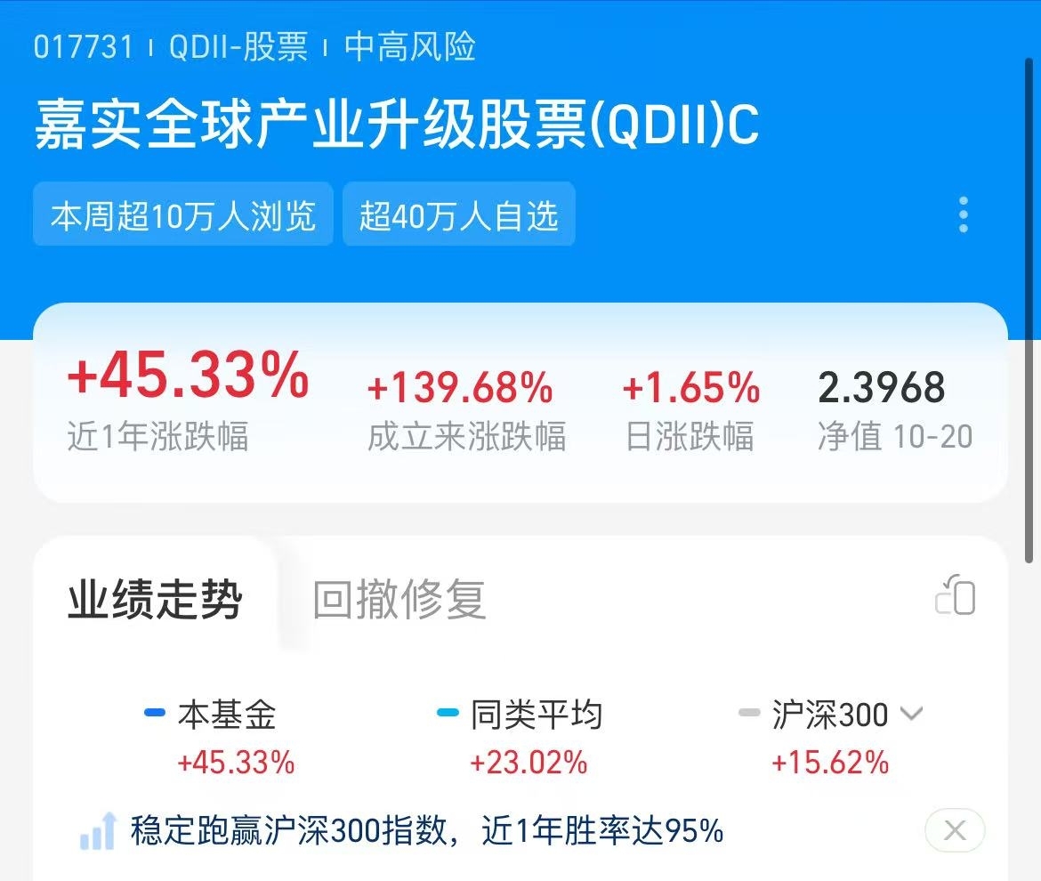 最近股市整体氛围挺好,我比较看好的017731基金,表现也符合预期。昨天它上涨1