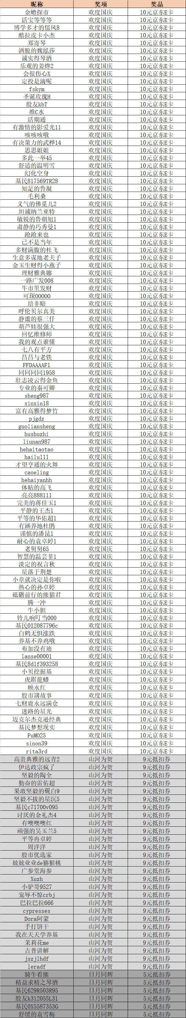 本次,【前500名必获奖】欢度国庆|聊见闻晒收益赢福利 活动,在大家的热情参与下,圆满结束啦!