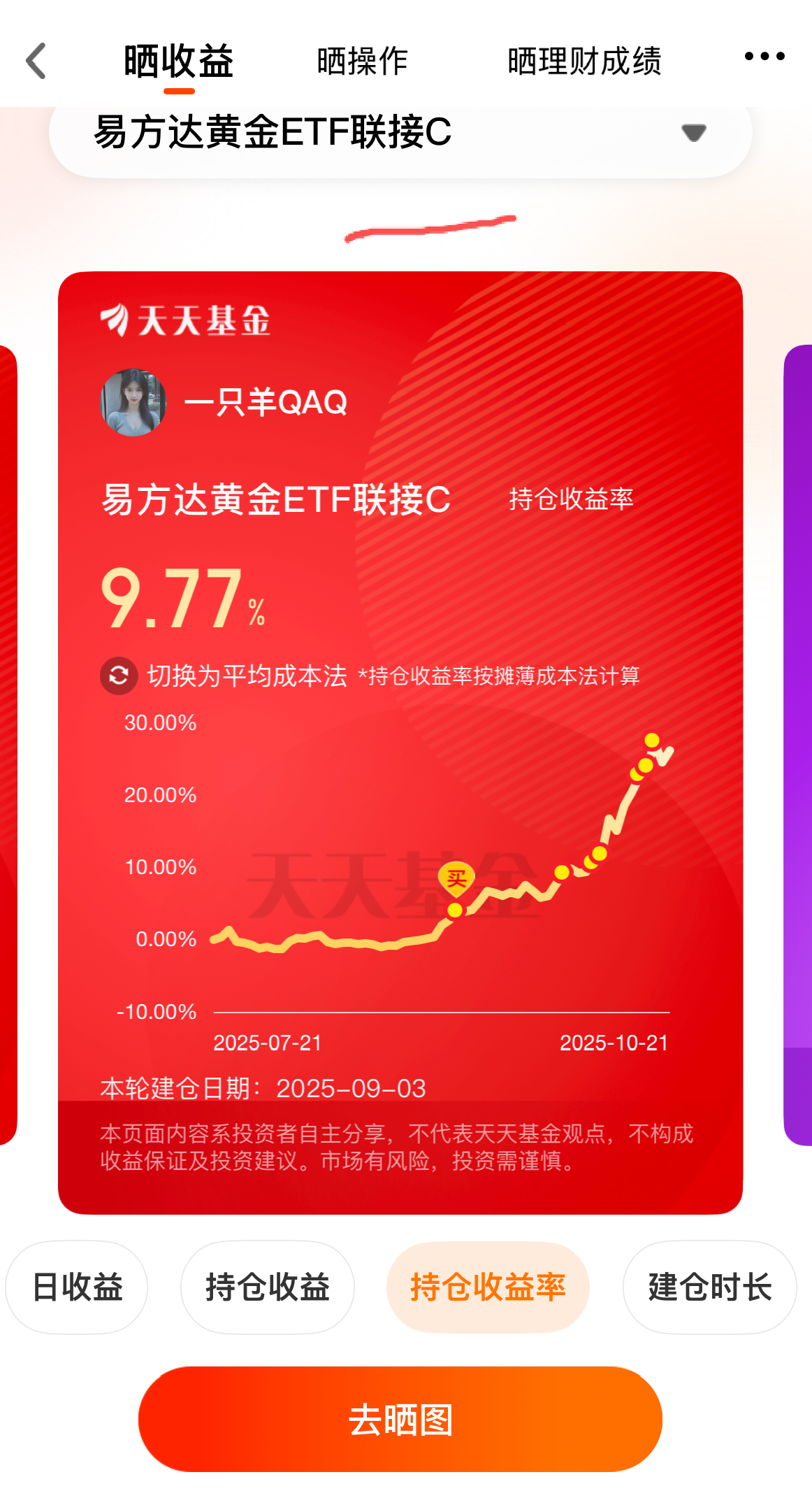 太狠了,昨天晚上现货黄金一度跌到6%,我今天是补仓黄金了,加了$易方达黄金ETF联接C(OTCFUND|002963)$,现在收益率9%多。黄金能够长线上涨,根本原因,还是央行在买,抗通胀首选黄金。技术调整那是肯定的,都涨到1000了,太疯狂了。回调也好,低位上车不慌。