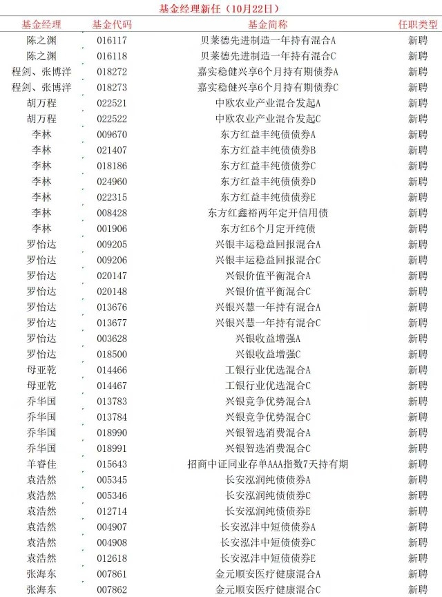 新聘11人,涉及36只基金;离职4人,涉及6只基金。