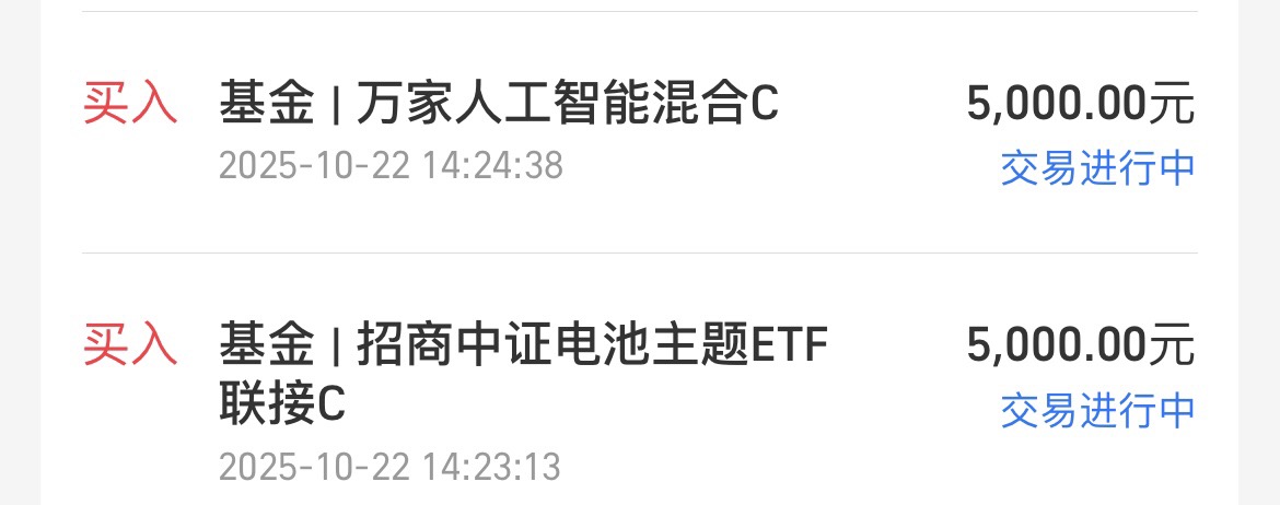 2. 人工智能,上车5000,$万家人工智能混合C$ 昨天上涨超过4%,今天只是略有回落幅度不大,这是一个专注与人工智能的主题基金涵盖了芯片C P O等细分领域,弹性大进攻性强,我个人今年一路持仓走过来的,累计盈利超过30%以上了。