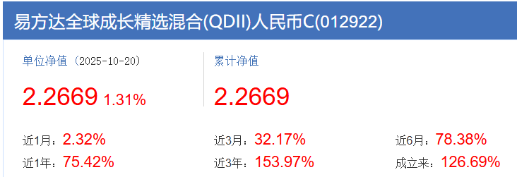 今天行情虽然科技赛道震荡但是我觉得后面还是有的行情的呀~说实话我之前一直在犹豫担心位置有些高,但是我看易方达-全球成长精选混合C这里不是单纯的某一市场,可以在大A、港股和海外美股进行配置,所以说相对来说更容易把握住后续的科技行情吧?而且这里近1个月收益率2.32%,咱就说跟着是不是吃肉呀~