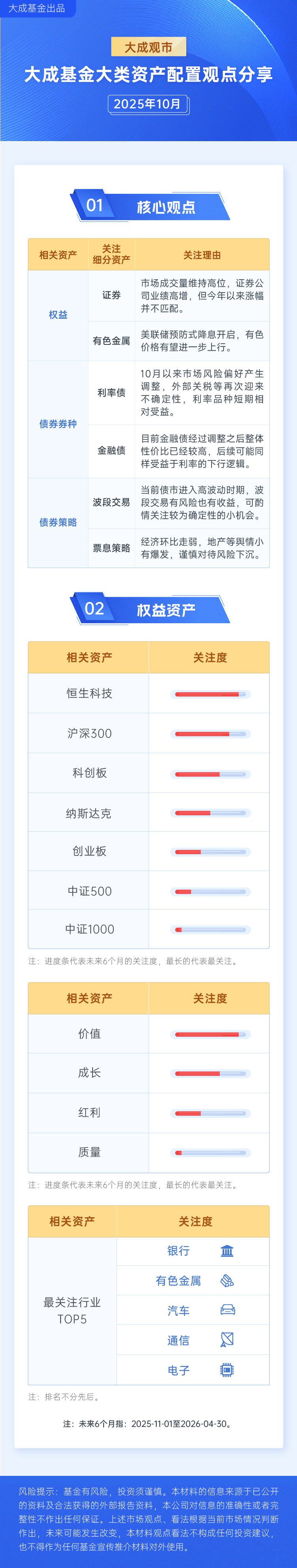 【大成观市】大成基金2025年10月大类资产配置观点分享