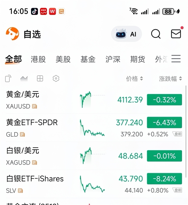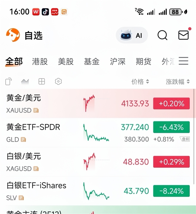 在今天下午16点5分,观察这现货黄金就才只过5分。结果就换成现货黄金,在后来已经跳水回落下来变跌 -0.32%了。