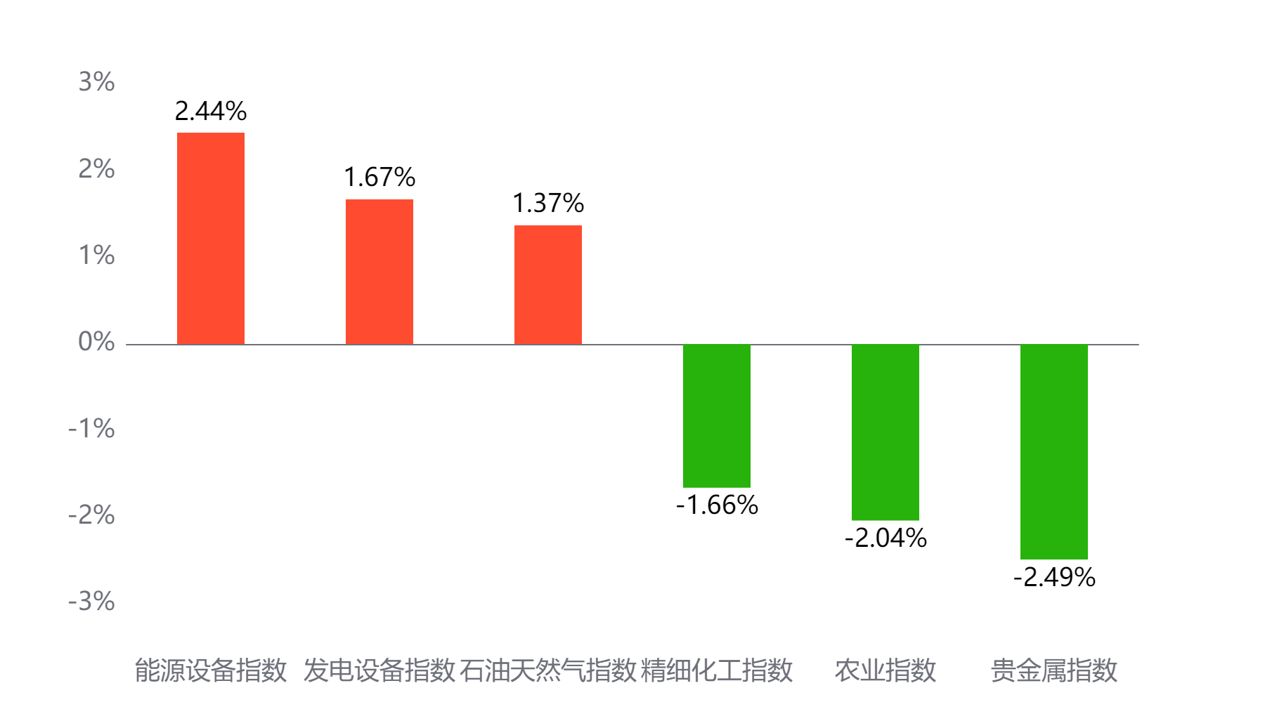 今天表现最好的主题概念依次为能源设备、发电设备、石油天然气,表现最差的依次为精细化工、农业、贵金属。