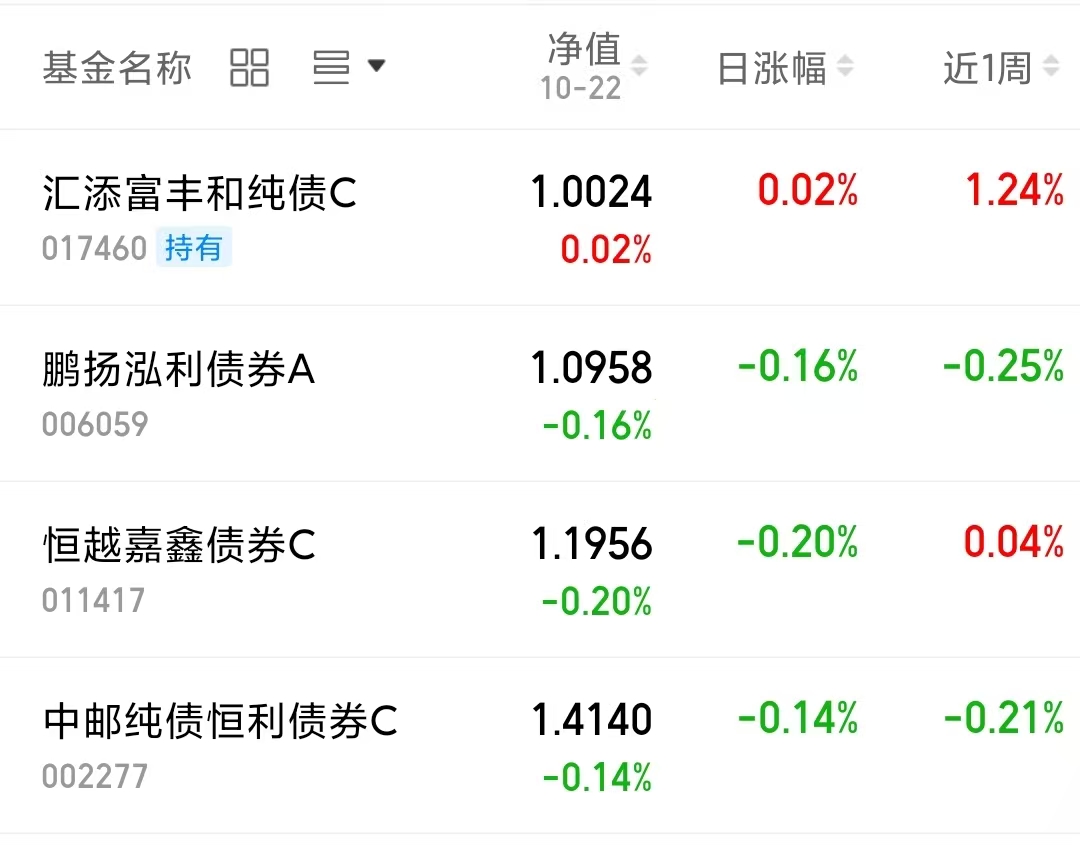 我看$汇添富丰和纯债C(OTCFUND|017460)$今天收涨2个蛋,近1周收涨124个蛋,这里30年超长债波段利器,久期恒定适合波段~