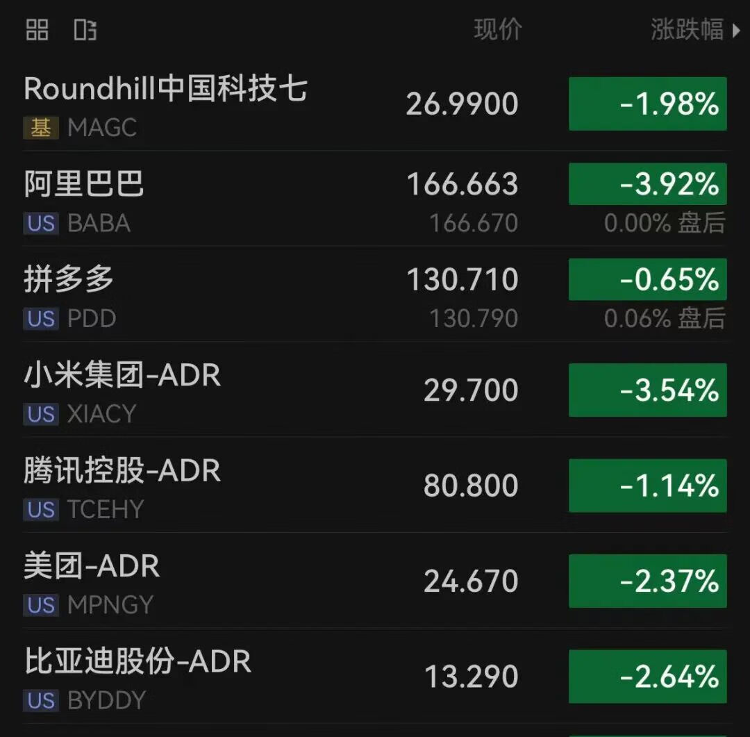2、再看下昨晚美股的“中国资产”的表现。——下跌。