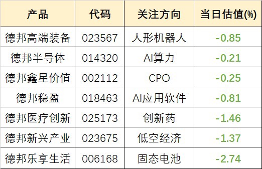 德邦全家桶今日估值来了$太平行业优选股票C$ $德邦半导体产业混合发起式C$ $东方人工智能主题混合C$