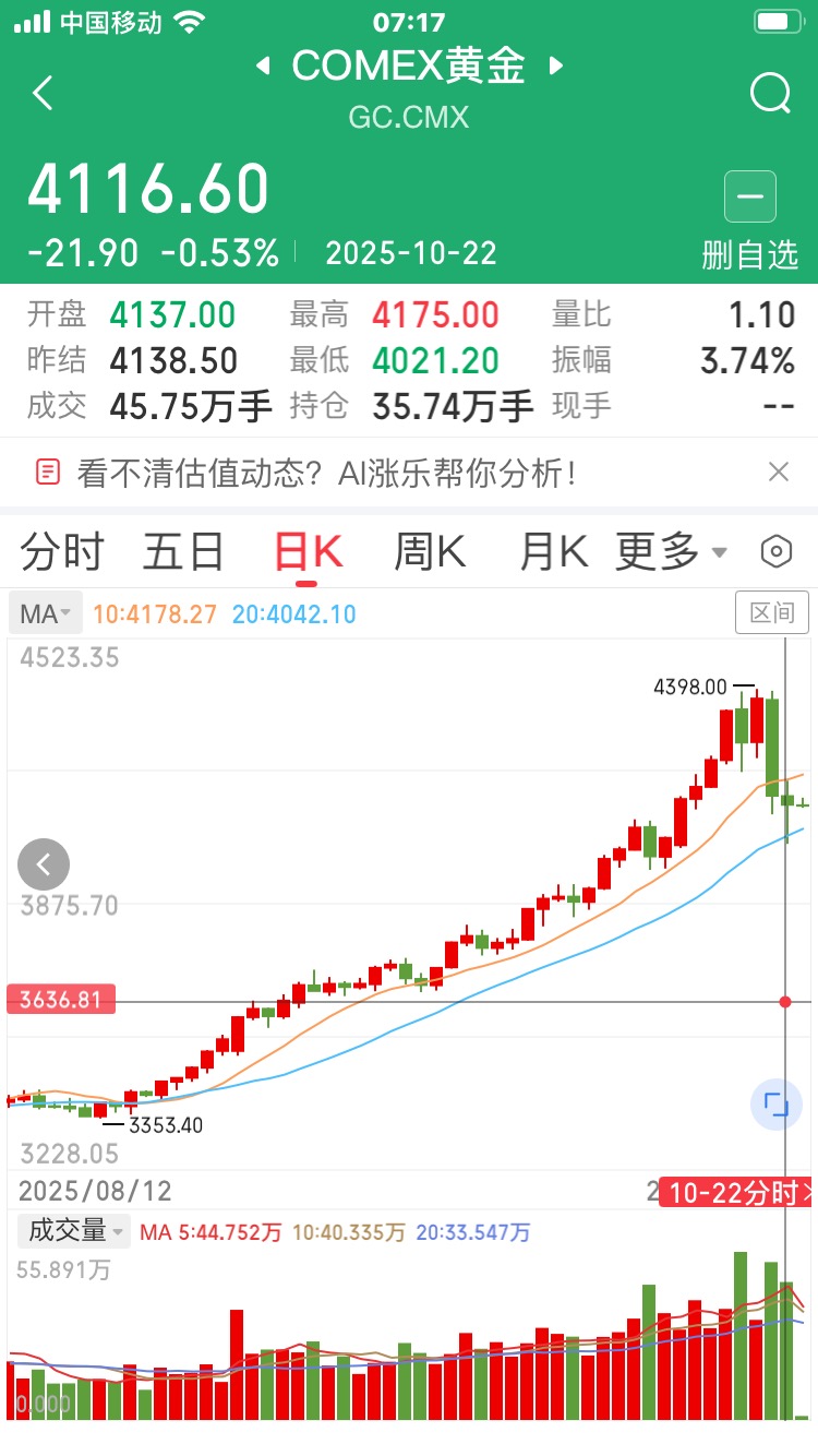 22日夜间,黄金探底回升涨0.18%,白银涨1%,ICE布油大涨4.94%。