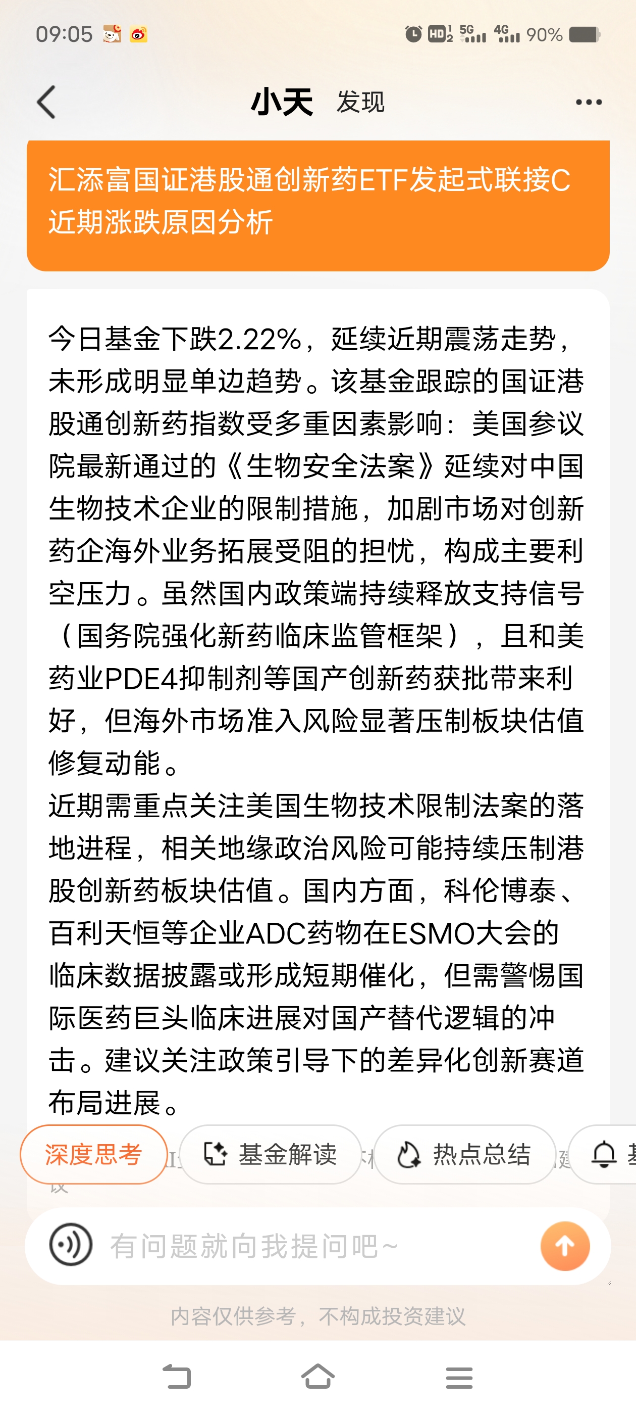 创新药这两个月业绩太差了,天天基金自带的Ai分析还挺不错