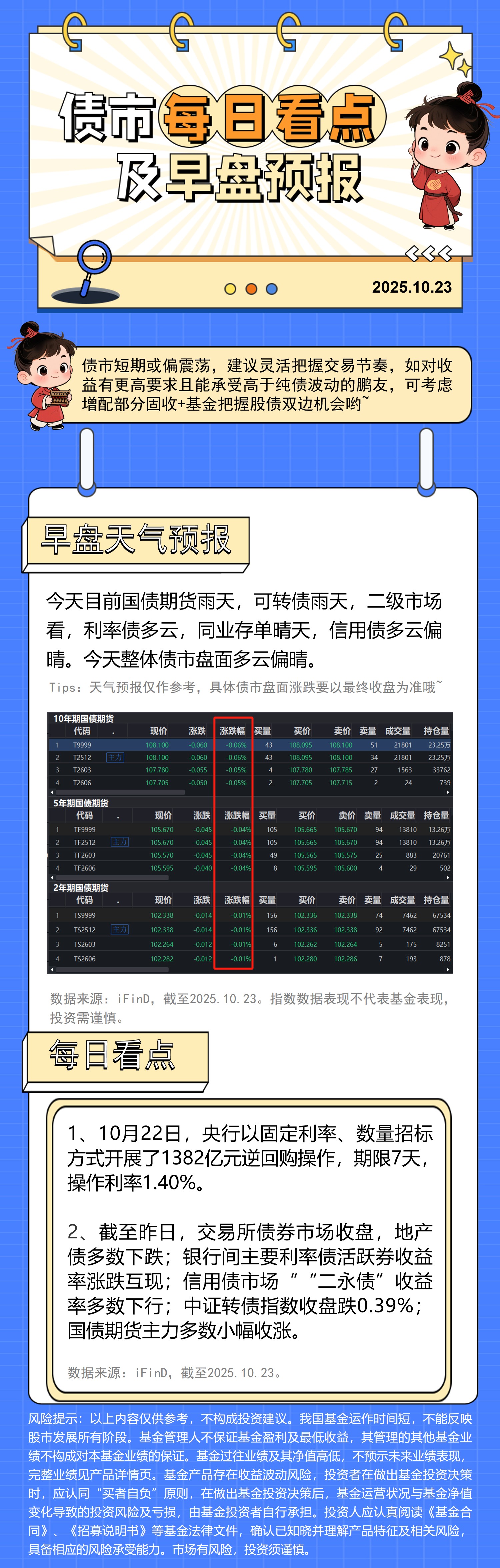 债市短期或偏震荡,建议灵活把握交易节奏,如对收益有更高要求且能承受高于纯债波动的鹏友,可考虑增配部分固收+基金把握双边机会