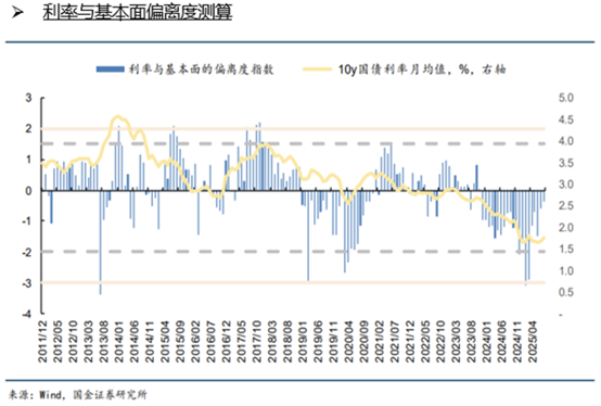 第二个理由是短期国债利率可能出现抢跑。何为抢跑?结合下图,2024年以来市场对疫情后经济复苏的悲观预期已充分定价,甚至出现抢跑。据国金证券测算,2024年底利率对基本面指标的偏离达到峰值,即利率水平显著低于当时基本面水平,当时投资者对经济的过度悲观预期催生了债券抢跑式牛市行情。