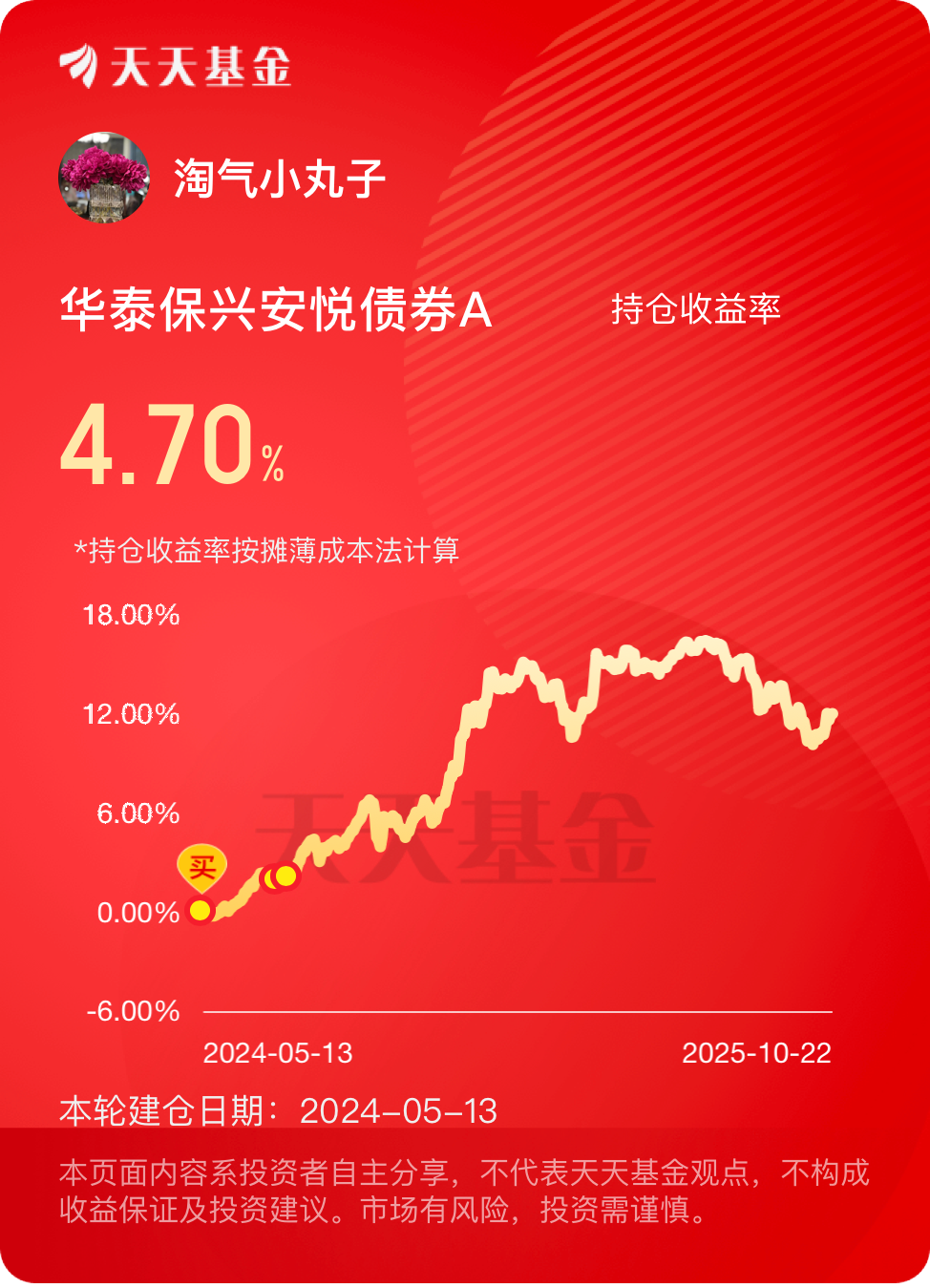 $华泰保兴安悦债券A$昨天还算稳得住呢,最近反弹势头不错,加油!