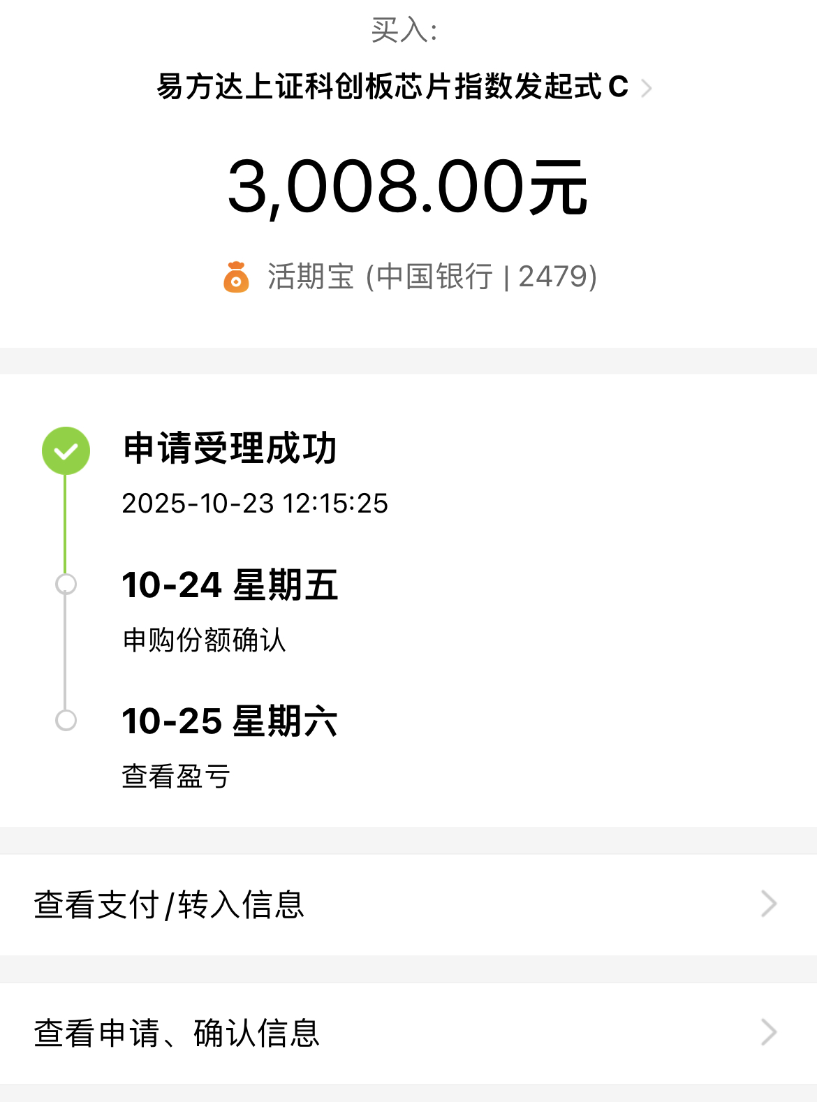 我打算加仓$易方达上证科创板芯片指数发起式C(OTCFUND|020671)$,这只基金各阶段涨幅都明显领先同类,近三个月涨了51.61%,业绩优势突出。它精准跟踪科创芯片赛道,能紧跟板块行情,趁今天调整布局,既能摊低持仓成本,也能坐等后续反弹。