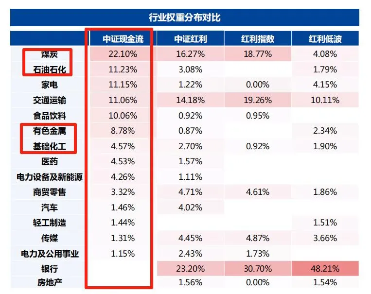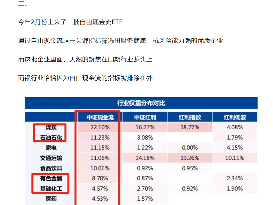 我之前写过自由现金流,他跟红利最明显的差异就是更加聚焦周期龙头,而且几乎没有银行