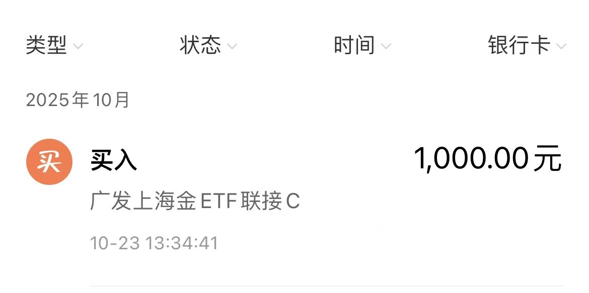 操作之前,今天我追加一次,黄金,$广发上海金ETF联接C$ 这两天黄金波动,实在太大了,昨天跌了5.05%,今天的上海黄金期货跌了1.8%,两个交易日跌了6%明显是有孔繁筹码,个人认为暴力下跌,一定会有暴力反弹,两天的大幅下跌,这两天我都有加仓,刚好可以博取一个超跌反弹,从中长线来看黄金逻辑,依旧存在。包括人民银行连续十一个月加仓黄金,美联储降息节奏加快,这些都是利好黄金价格水涨船高的。