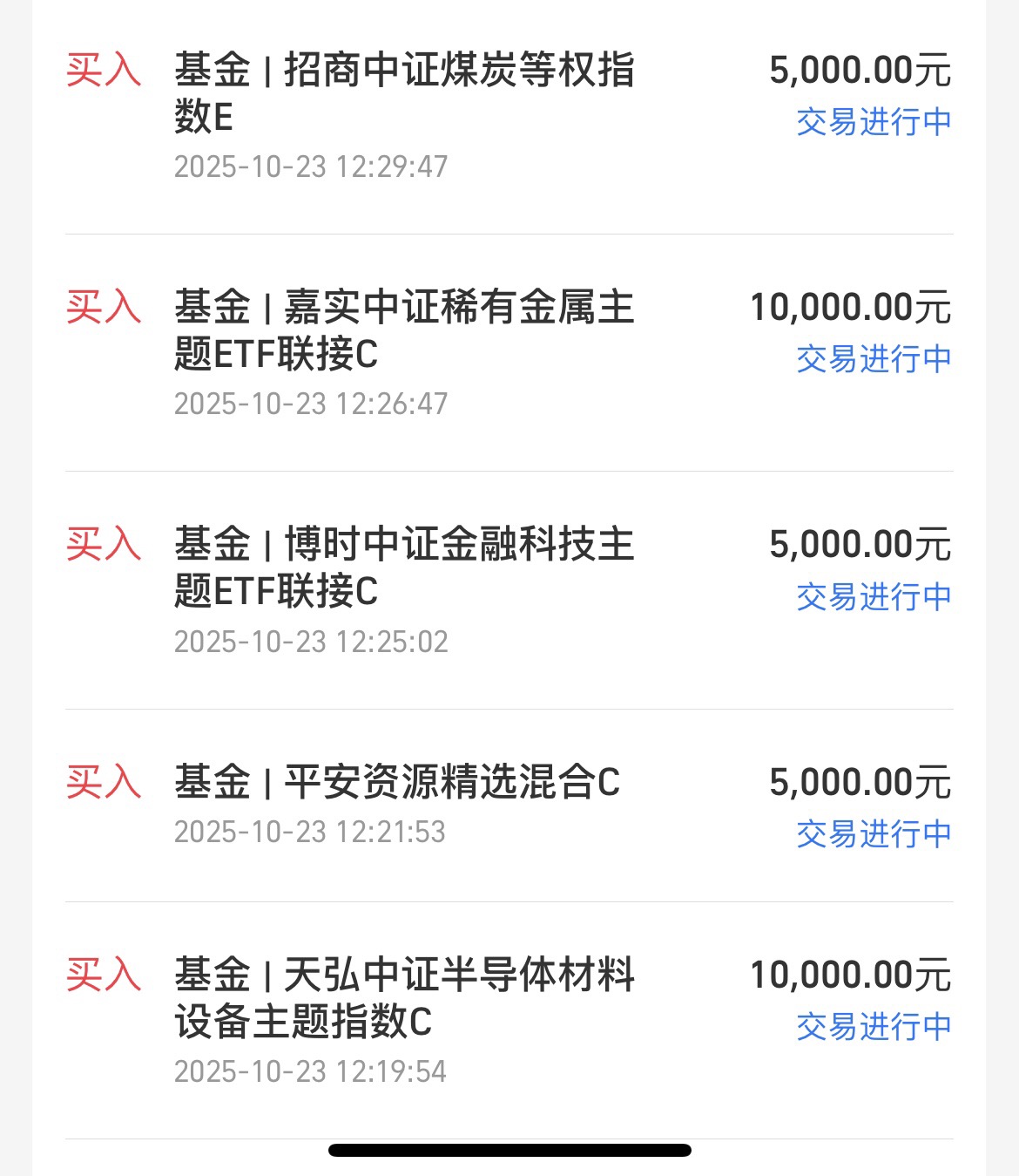 2. 资源,上车5000,$平安资源精选混合发起式C$ 这是一个刚刚放开的基金,专注的资源板块,涵盖了煤炭,能源,铁矿,有色金属,稀土等各细分领域,昨天下跌了3%,今天探底回升,个人上车5000。