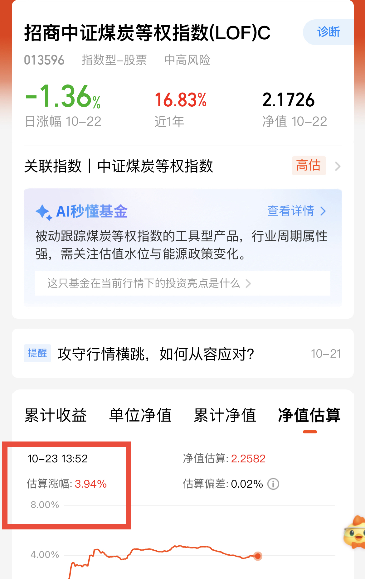 今天大盘延续震荡调整,不少板块都在跌,没想到煤炭板块突然爆发,指数一下涨超4%,真是彻底爆发了,我也打算分一杯羹,今天加仓$招商中证煤炭等权指数(LOF)C(OTCFUND|013596)$跟着喝口汤。