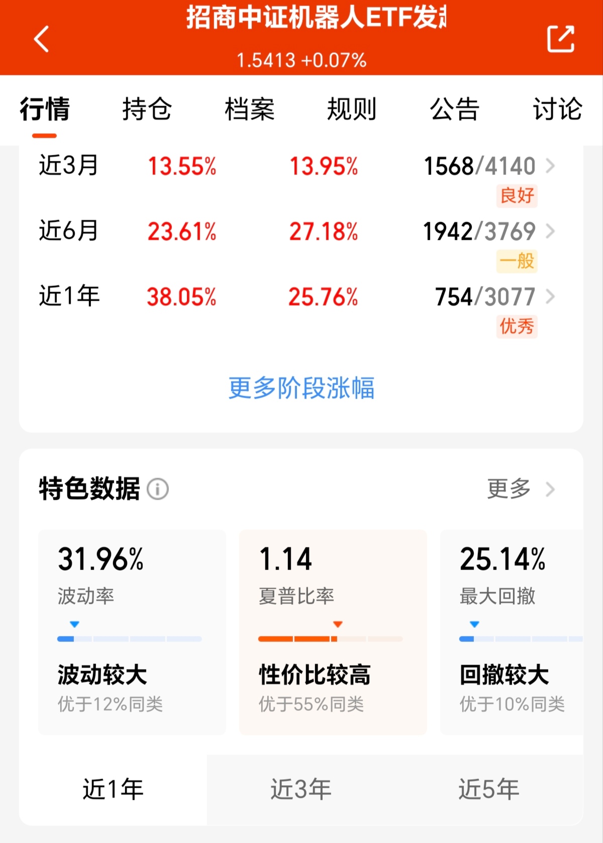 近期A股市场呈现震荡趋势,但我发现机器人赛道,却能迎来三连涨行情,并且机器人在国内领域技术创新成果显著,我也选择定投:$招商中证机器人ETF发起联接C(OTCFUND|020482)$持仓布局于机器人产业链上下游,近一年涨超38.05%,并且当下特斯拉官新招聘Optimus制造工程师,松延动力首发低价高性能人形机器人提高行业热度,这进一步为机器人产业提供了强有力的支撑,而我也将长期看好这一赛道,并且采用逢低定投策略!