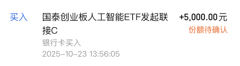 本人今日加仓国泰创业板人工智能ETF联接C(025493)5千元。非投资建议。