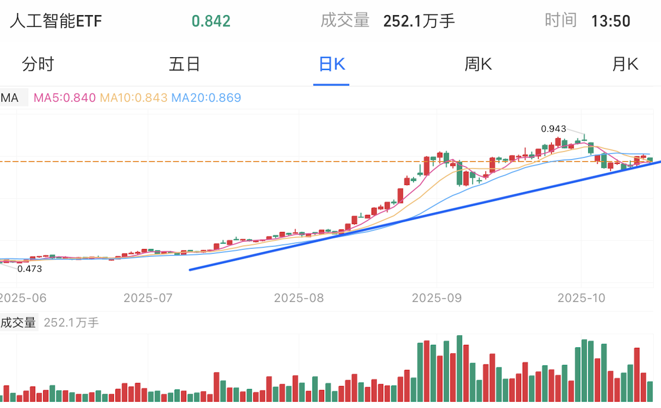 今年以来,AI 算力与光通信方向持续突破,人工智能产业正从概念迈向大规模落地。当前市场虽有调整,但从中长期视角看,AI 仍处在起步阶段,投资者可将回调视为布局良机。技术面上,若该板块出现均线支撑、箱体震荡企稳,则可能迎来下一波上涨机会。