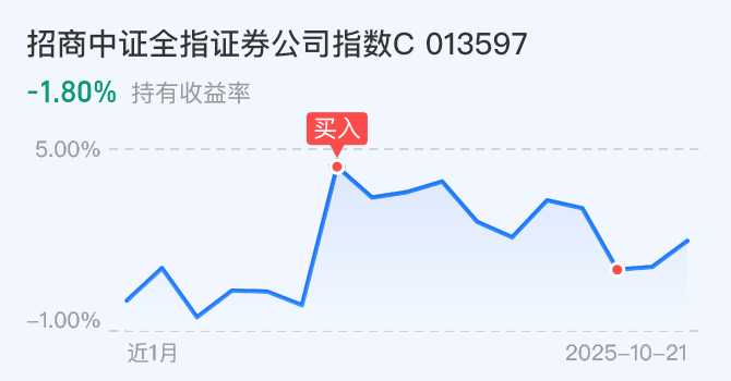 证券板块本来就处于下行趋势中,今日低开早盘直接低走盘中触底才有所拉升,但因量能跟不上没拉升多久又继续低走了,整体还是调整的态势。板块平常走的就比较磨叽,但震荡充分也会再次异动拉升当前只能耐心等待。今日不动。$招商中证全指证券公司指数(LOF)C(OTCFUND|013597)$