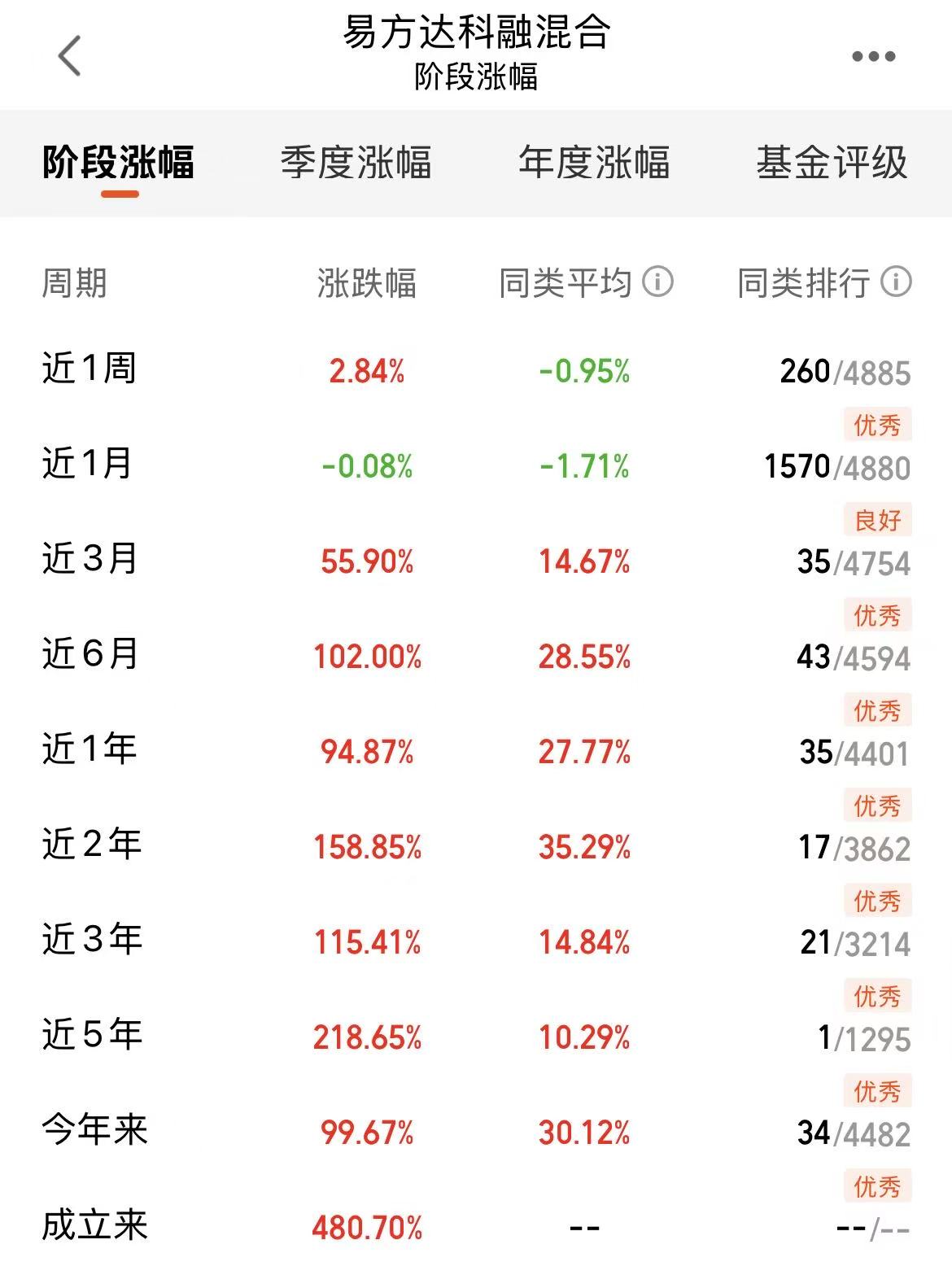 今天大盘继续调整,三大指数低开低走,科技、医药等等基本都是吃大面了,不过我是继续看好科技这个主线的,易方达科融混合不仅有科技方向,还有内卷等相关新能源方向的,近六个月涨幅102%,业绩优秀,盈利强,调仓及时,前景广阔,我觉得长期持有挺不错的!