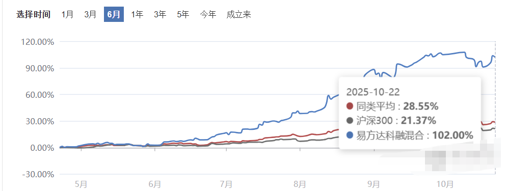 现如今行情均衡配置感觉更契合当前市场行情吧?我看易方达-科融混合这里配置科技、新能源、军工等赛道,业绩上近6个月收涨102.00%还是蛮香的呀~而且我看这的基金经理能力强,回撤控制能力强,现如今的震荡行情之下咱还是多一些耐心,期待回暖行情吧~