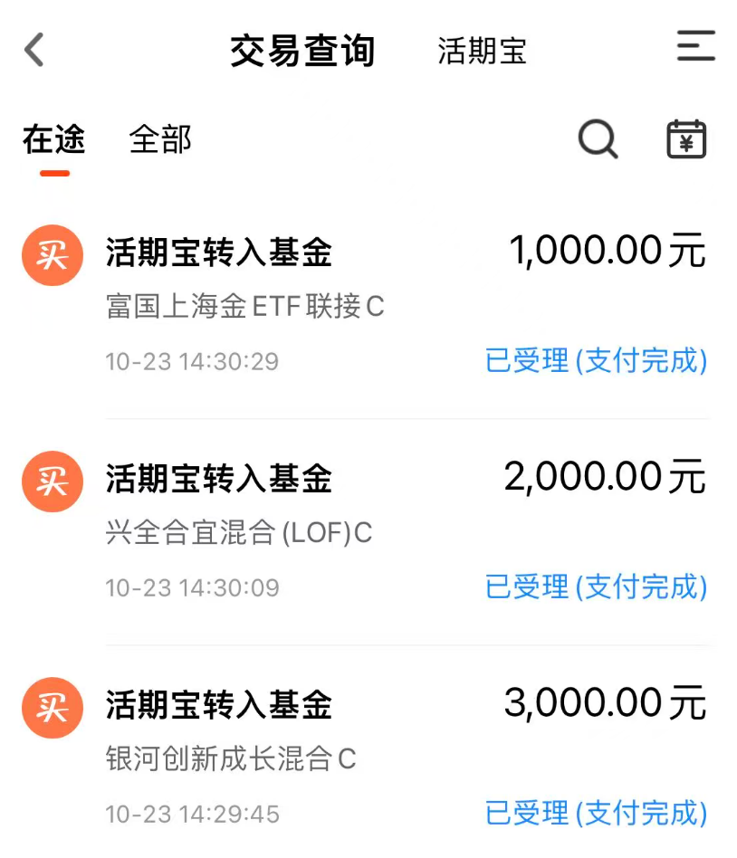 买入1000元$富国上海金ETF联接C(OTCFUND|009505)$黄金经过这两天的下跌,是很不错的上车位置了。美国政府已经停摆22天,急需降息来刺激市场,所以月底降息基本是板上钉钉的。而且黄金历次调整没有超过10%,现在是一跌就会补涨。黄金整体趋势还是不变的,降息后,黄金还是有行情的。熙凤今天选择继续买入一些