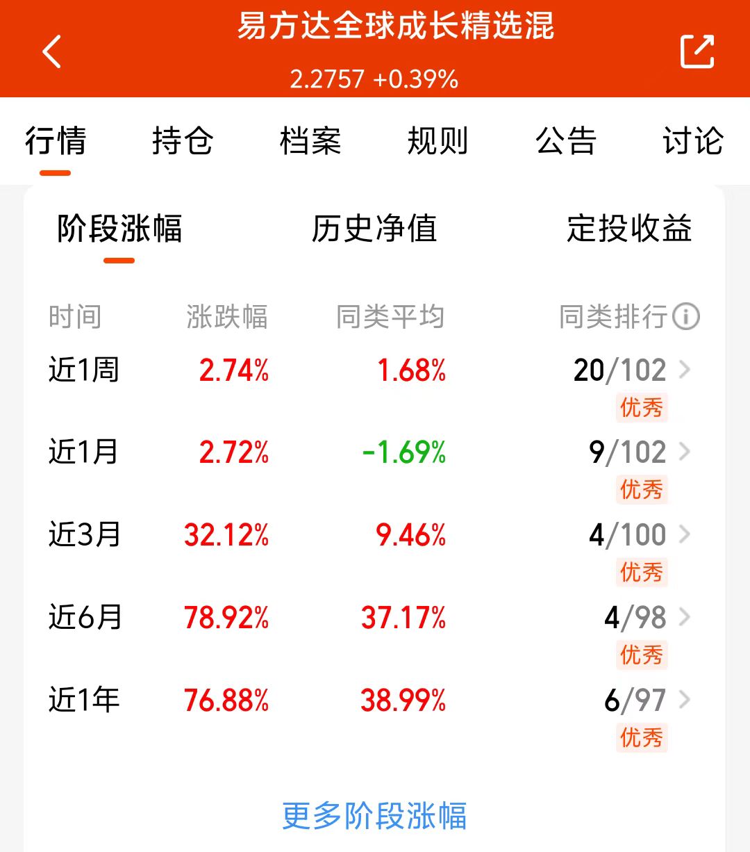近期全球市场波动比较大,大科技板块回调,美股昨夜调整,港股和A股也回调了,轮动速度很快,易方达全球成长精选混合C持仓可投全球科技板块,美股、港股和A股都能投,近三个月涨了32.12%,近六个月涨了78.92%,还是历史绩优低回撤榜一,回撤控制的也不错,我准备分批加仓了!