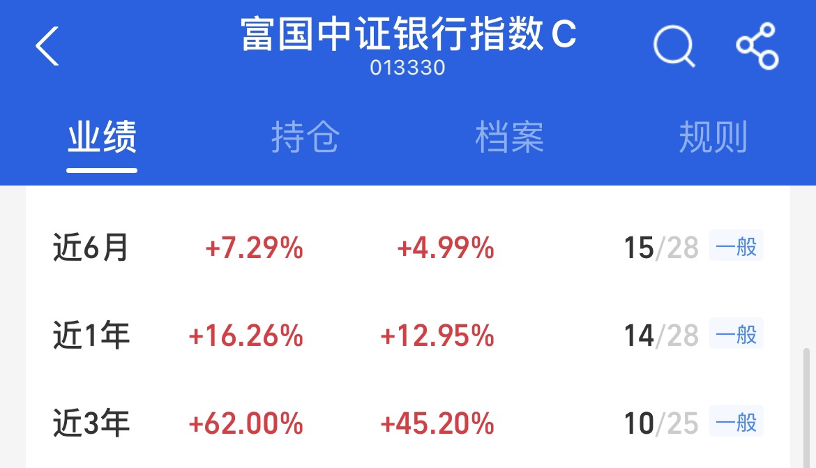 今天股市震荡,大行情再次走弱。年底要来了,从收益来看,红利类资产相对稳健一些。它的防御属性优势凸显。近期市场多有波动,资金也更倾向于红利板块。关注的$富国中证银行指数(LOF)C$ 跟踪中证银行,主要投资的是国有银行和股份制银行,信用等级较高。重仓股招商银行、农业银行、工商银行等等实力较强,有银行护盘,风险和收益可以做到更加均衡。连续上涨两日,近一月上涨5.77%,近一年上涨16.26%,收益稳健。新一轮的资金博弈扰动了市场情绪,我也提前埋伏四季度市场,今天先建个底仓,看看后面市场回暖后,再考虑分批次