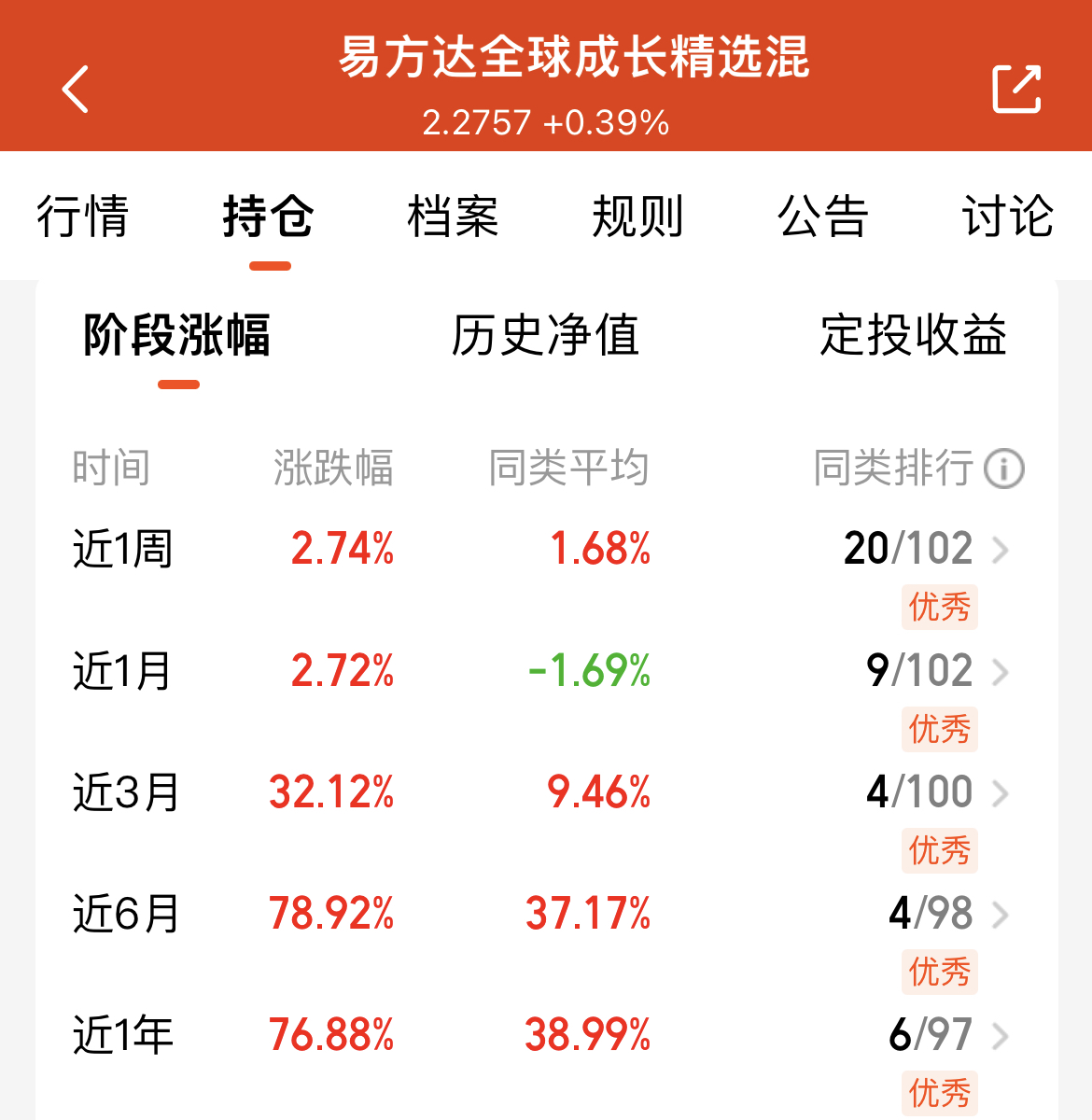 最近大A科技板块回调得厉害,但$易方达全球成长精选混合(QDII)人民币C(OTCFUND|012922)$反而挺稳,近一周涨了2.74%,近半年涨幅超78%,业绩也优秀。它不局限单一市场,把美股AI、港股互联网、A股算力都包了,既能蹭科技长趋势,又靠跨市场配置控回撤。现在科技回调正好是机会,我打算再加点,毕竟全球科技的景气度还没散。