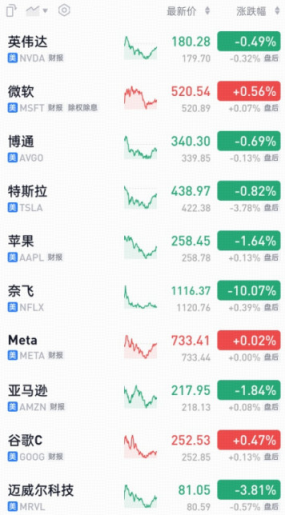 【重仓涨跌】昨日华宝纳斯达克精选前十大重仓股3涨7跌,美元兑人民币中间价↓0.03%。